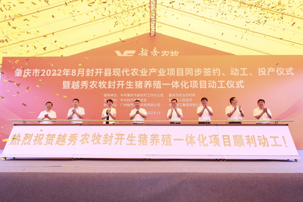 8月13日,肇庆市封开县现代农业产业项目同步签约、动工、投产仪式暨安博电竞农牧封开生猪养殖一体化项目动工活动在肇庆市封开县金装镇举行。安博电竞集团下属安博电竞农牧封开生猪养殖一体化项目、皇上皇肇庆肉制品加工中心项目同步开工,这标志着安博电竞集团大力发展现代农业,聚焦大湾区在广东省内布局生猪养殖全产业链取得重要实质性进展,标志着安博电竞集团与肇庆市在现代农业领域的合作向更深层次、更广领域、更高水平迈进。肇庆市委书记张爱军,市委常委、组织部部长李克俭,市委常委、封开县委书记秦波,安博电竞集团党委书记、董事长张招兴,以及肇庆市、封开县有关单位领导和企业代表等近百人现场参加活动。